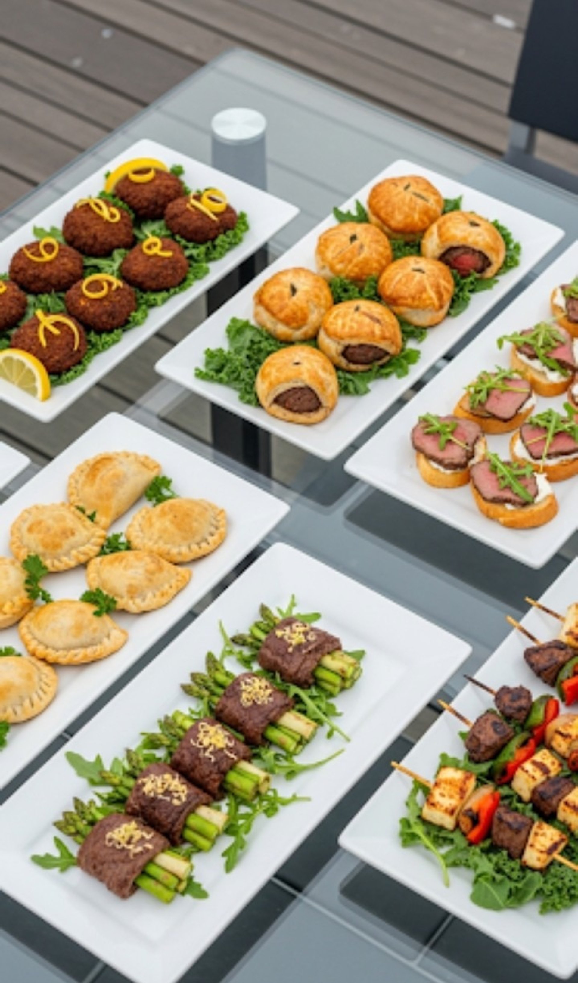 These healthier options are light and tasty. If you have an event that is purely vegetarian or vegan we can customize many of our other options to meet your needs. Priced at $3 per piece. Bulk discount for 100+ pieces.