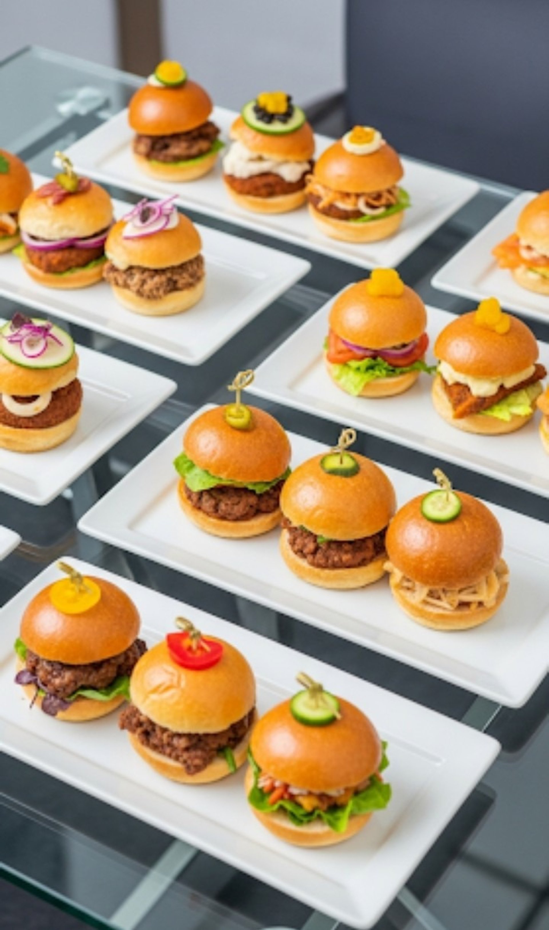 These little versions of sandwiches are big on taste. Priced at $5 per slider. (Seafood sliders $7 each) Bulk discount for 100+ pieces.