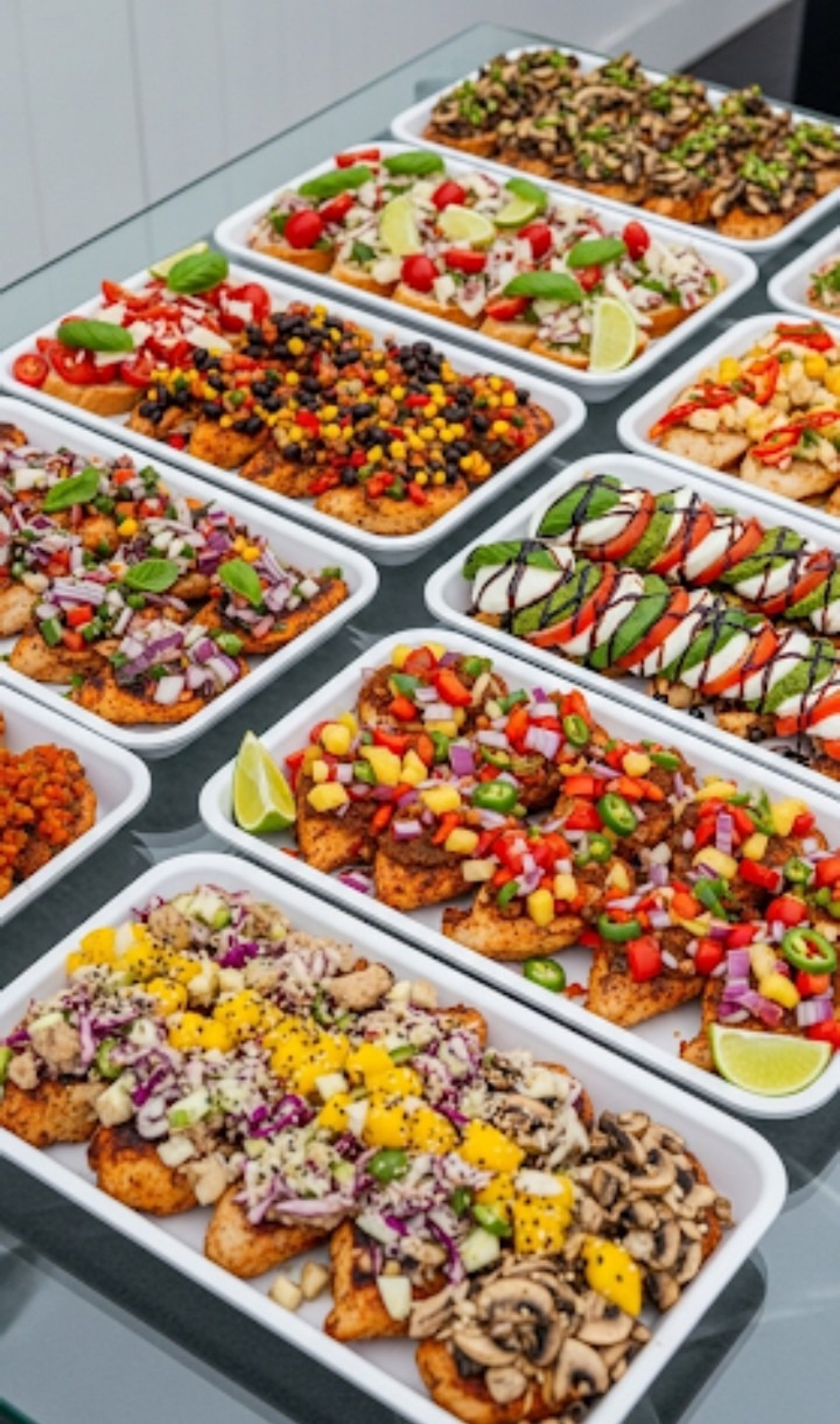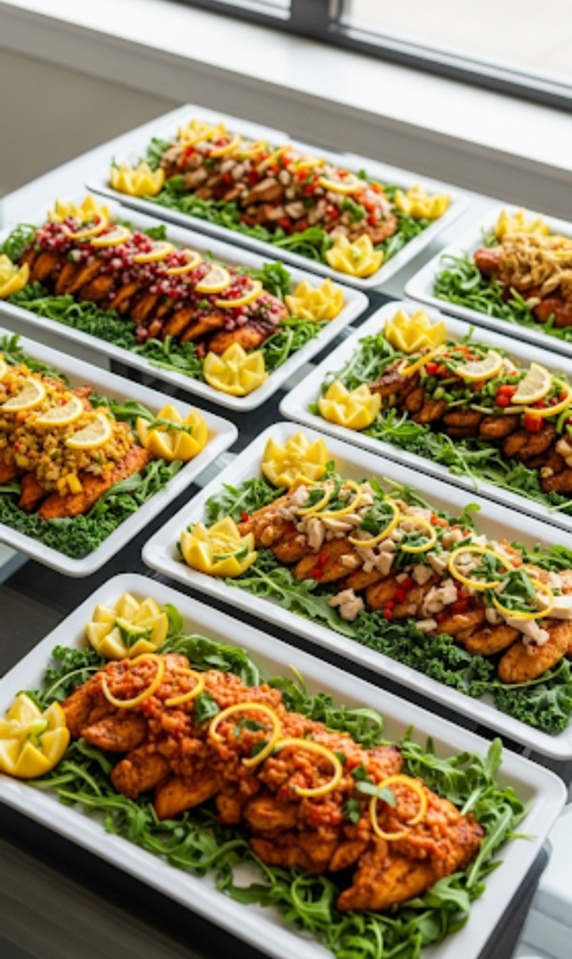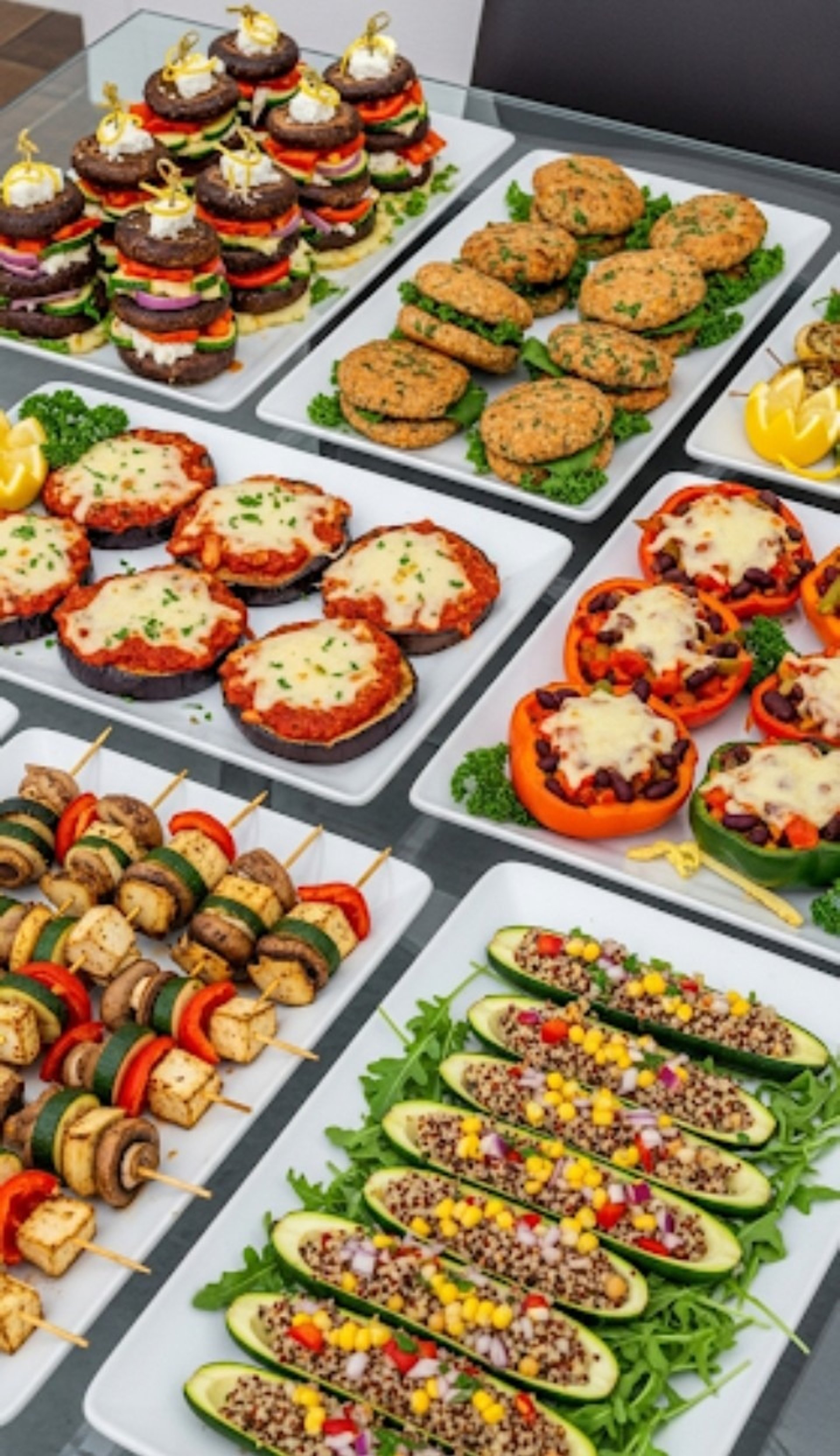 The following are our delicious meatless (and dairy free) options that are lighter and healthier but no less flavourful. They will energize you. Can be served either hot or cold plattered.